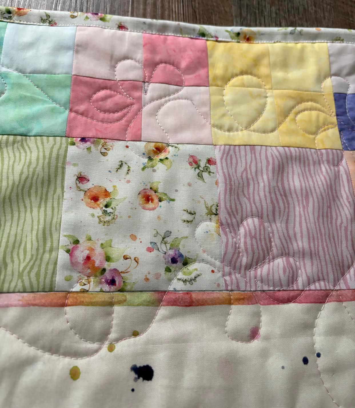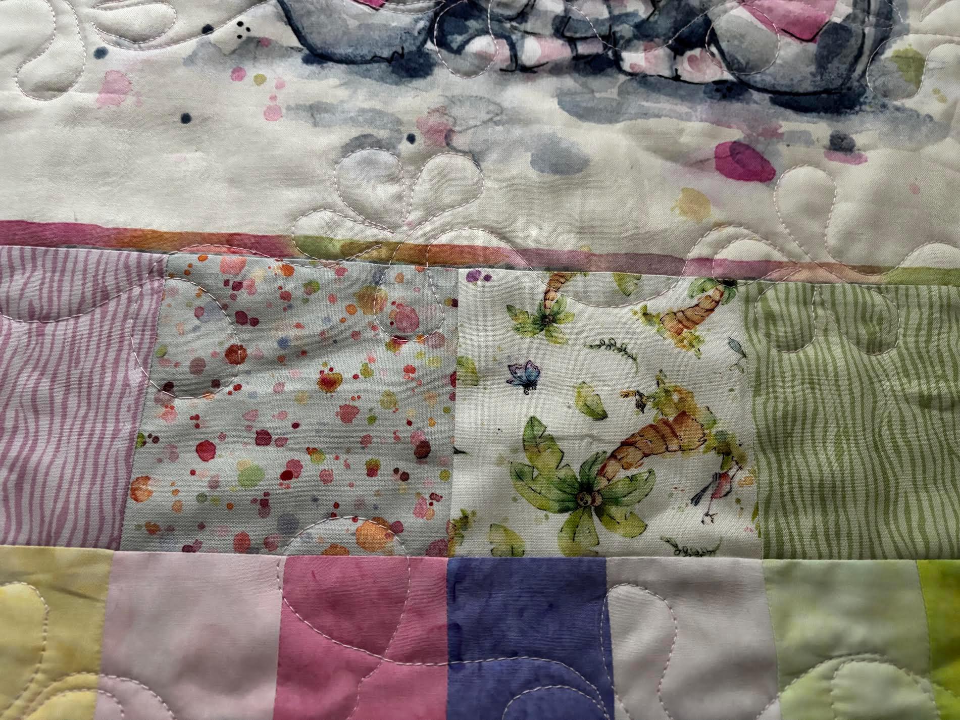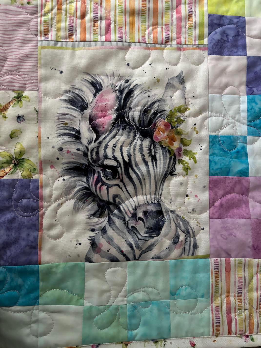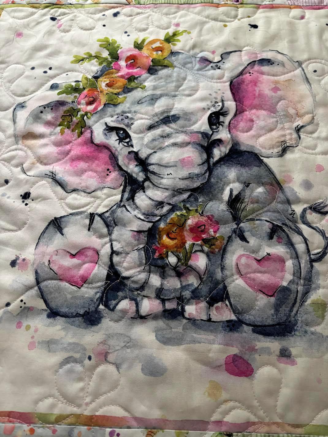 Fun and playful design, this sweet baby quilt is made with Little Darlings fabric with adorable baby elephant, zebra and lion in watercolor style fabric and bright pastel colors. This 41”x34” baby quilt is handmade, one of a kind and perfect for your little one’s room.